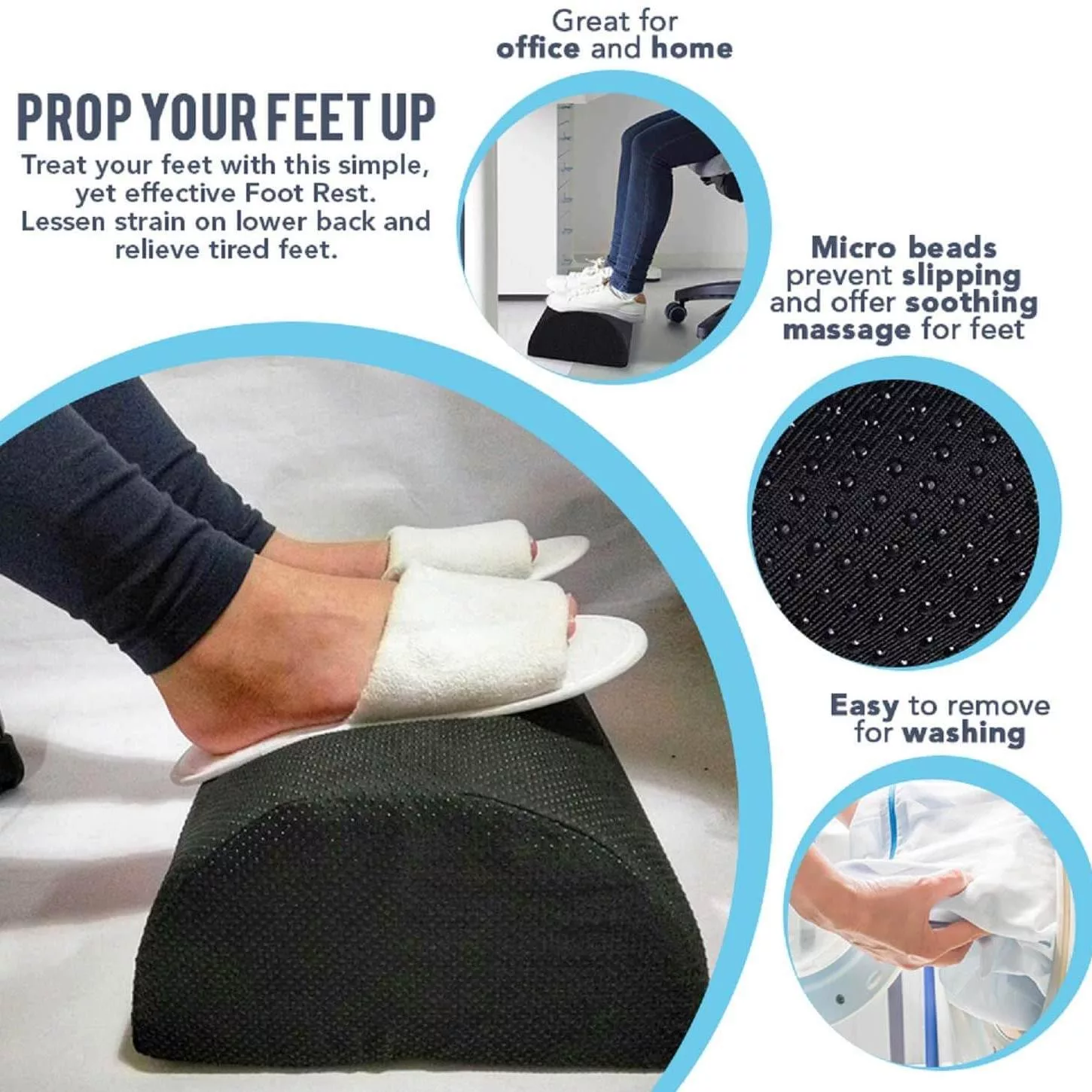 • PAIN RELIEF – our Feet Rest Cushion helps to relieve leg, foot, knee, lower back, hip, ankle and joint pain by allowing leg muscles to rest.